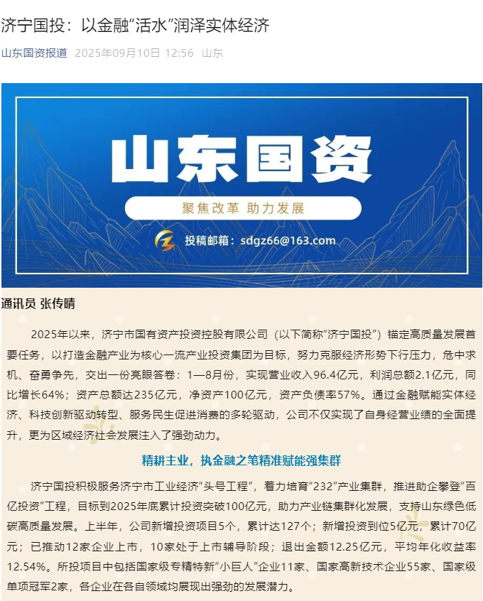 《山东国资》公众号 | 济宁国投:以金融“活水”润泽实体经济